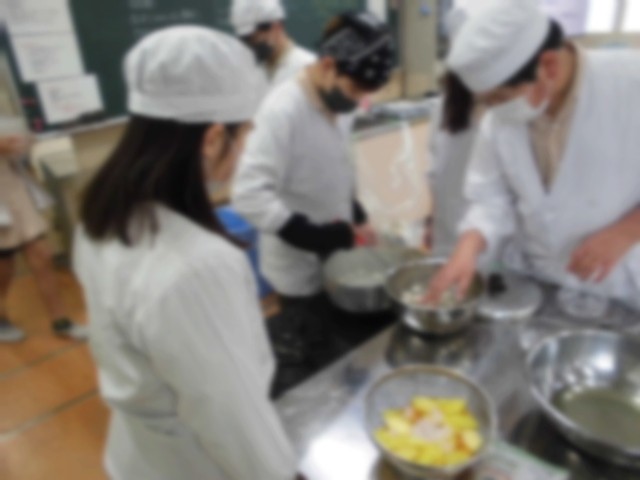 今日は、6年生で最後の調理実習「フルーツポンチ」づくりでした。