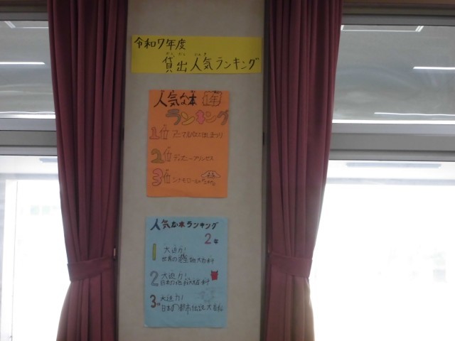 図書室には、本年度たくさん読まれた本の学年ごとのランキングが掲示されています。