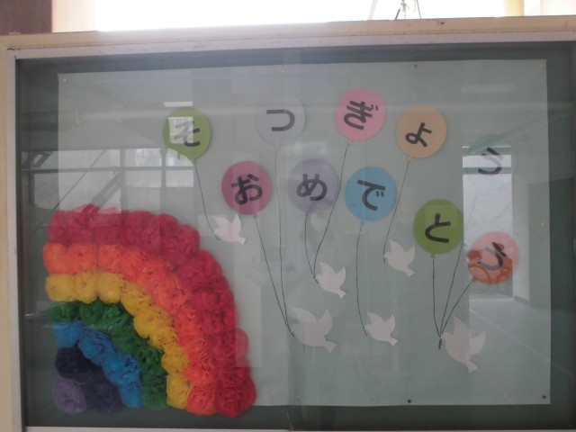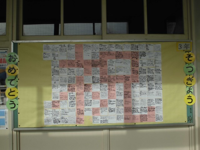 校内の掲示板も6年生の卒業をお祝いするものになりました。