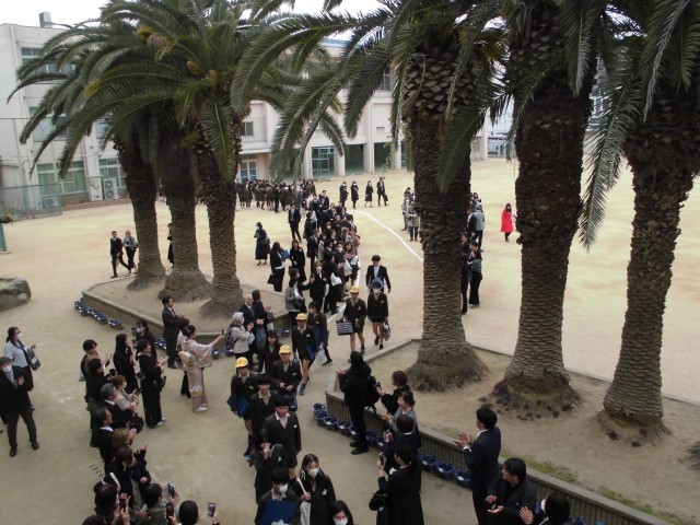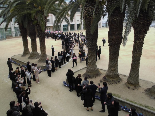 6年生は最後に花道を通って、教職員、在校生、地域来賓の皆様、そして多くの保護者の皆様に見守られ、立派に巣立っていきました。