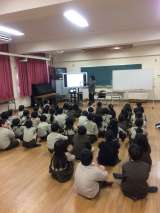 今日は、消防局の皆さんや、区役所の皆さんの協力を得ての防災訓練でした。まず、講堂...