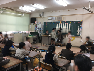 教室によって、色々な光景がありました。 教室でお楽しみ会、運動場でゲーム、大掃除...