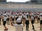 5月25日(月)、児童朝会の後、運動会の種目の一つである「東中本音頭」の練習をし...