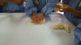 先生が小麦粉の袋をあけて、水を混ぜて、コネコネしてるのを見て、さぁ、楽しみに、し...