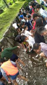 魚つかみです。 ヤマメとアマゴをつかまえます。 すぐに塩焼きに。