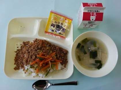 <牛乳 ビビンバ(ごはん) トック いり黒豆>
