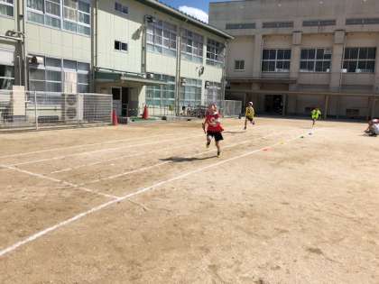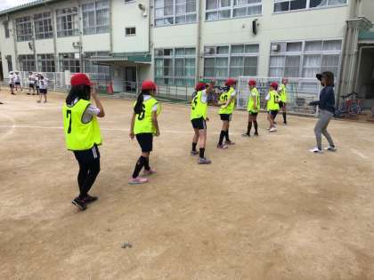 バトンの渡し方や渡すタイミングをグループごとに練習しました。