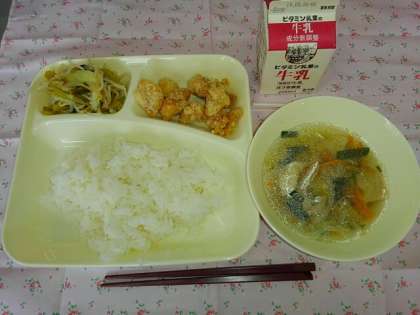 <ごはん 牛乳 鶏肉のからあげ 中華スープ