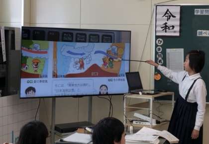電子黒板にうつしたイラストを使って、説明することができました。