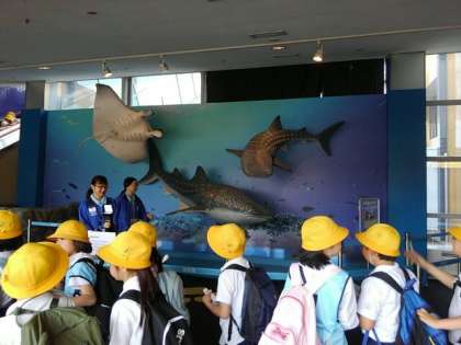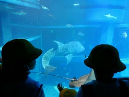 ジンベイザメのお食事タイムに興味津々で見入りました。