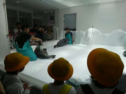 運のいいグループは、アザラシのお食事タイムも見ることができました。