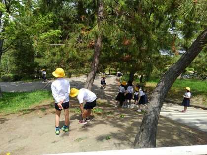 シロツメクサやマツボックリを集めたり、おにごっこをしたり。