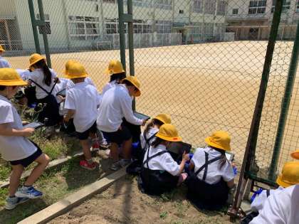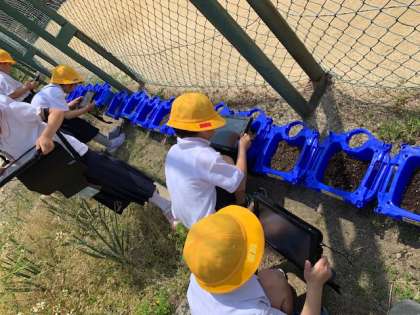 金曜日にあさがおの種をまき、3日目のようすをタブレットを使って記録しました。