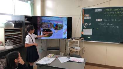 あらかじめ家庭学習で調べていた沖縄県の気候の様子や、人々のくらしの様子を班で話し合い、気づいたことや感想を出しました。