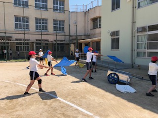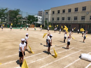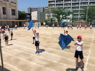 休憩中も、旗振りの練習を楽しそうにやっていました。