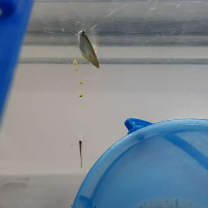 三年生で飼育しているモンシロチョウの幼虫が続々とチョウヘと羽化しています。