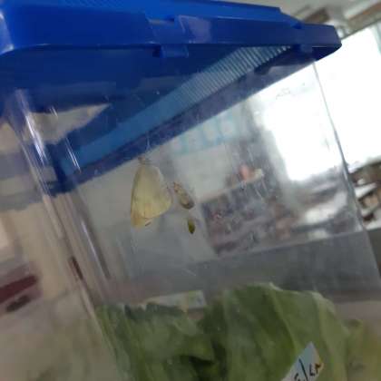 その一方で、幼虫で息絶えたもの、サナギのままチョウヘなれなかったものもいます。