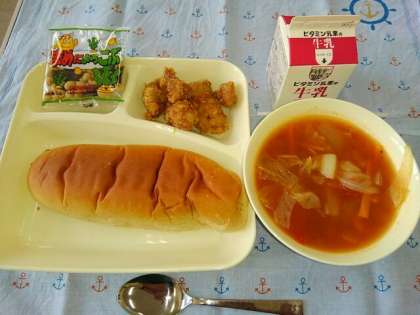 <大型黒糖パン 牛乳 一口トンカツ ミネストローネ 豆こんぶ>