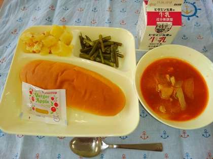 <大型コッペパン 牛乳 ケチャップ煮 さんどまめのソテー