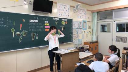 栄養教諭の先生から、野菜について教わりました。