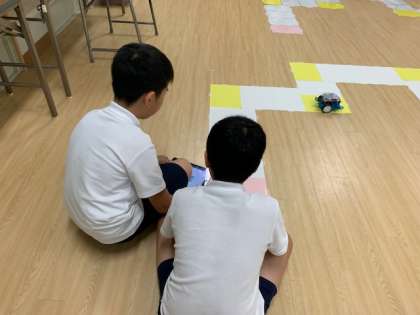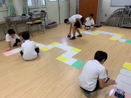 夏休みに行われる「学びプロ」というロボット大会に向け、MbotというロボットをiPadをつかって動かし、ゴールを目指します。