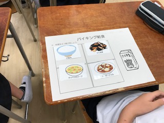 まず、「ビュッフェ給食だったら、どんなメニューを選びますか?」との質問で、それぞれ好きなメニューを選びました。
