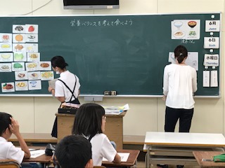 東成区の栄養教諭の先生に来ていただき、「栄養バランスを考えて食べよう」というテーマで学習しました。