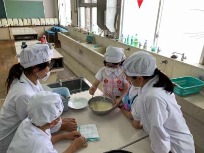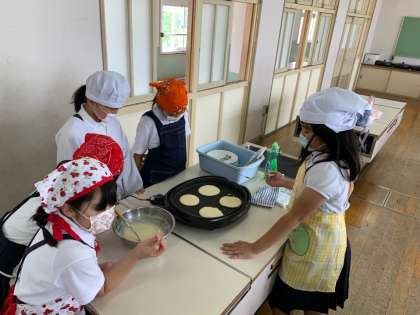 5.6年生は授業で調理実習を経験しているので、4年生に道具の場所を教えながら準備していました。