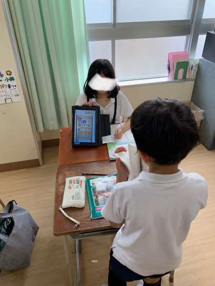 今日は、案内役とお客さん役に分かれて活動しました。案内役はタブレットを使って案内をしました。