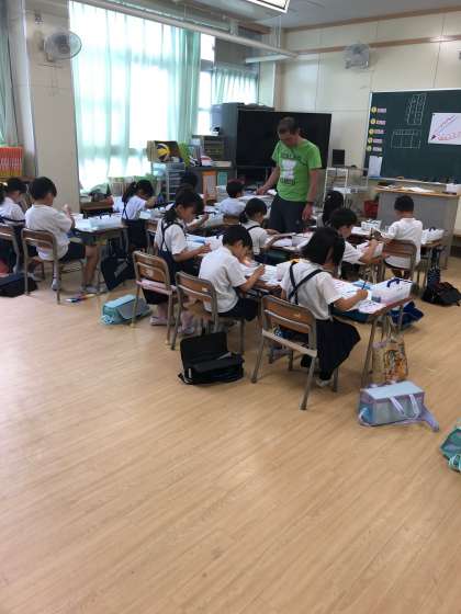 図工科で、初めて絵の具を使いました。