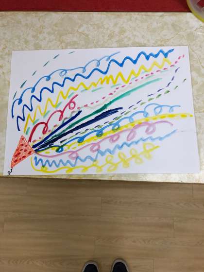 いろいろな色を混ぜて、カラフルな線が完成しました。