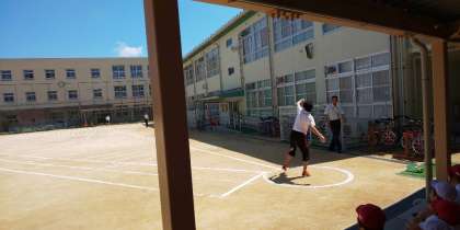 とても速い走りや遠くまで飛ぶボールに、児童は歓声をあげていました。