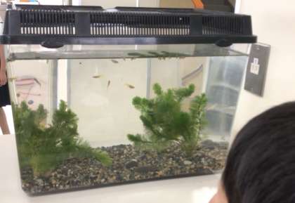 理科の授業で、メダカを教室で育て、様子を観察します。