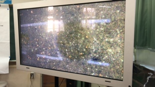 プレパラートにスポイトでとった水をのせ、顕微鏡でのぞいて見ました。