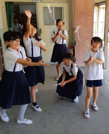 科学クラブのみんなで第一回ヘリコプターコンテストをしました。