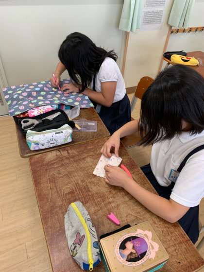 玉結び、玉止め、なみ縫いは家庭科で習ったばかり。ひとつひとつ確認しながら慎重に仕上げていました。