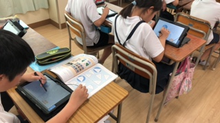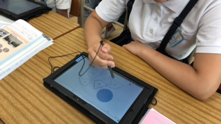 デジタルコンテンツを使って、タブレットで合同な図形はどれかを探しました。