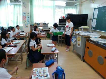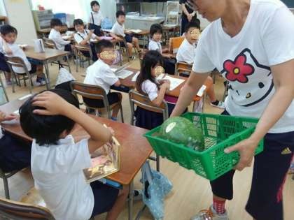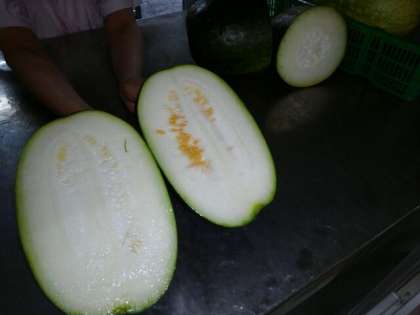 今日の給食の材料、冬瓜(とうがん)を調理前に見せてもらいました。