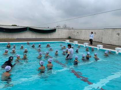 1年生は、初めての大きなプールにドキドキしていた様子でした。2年生は去年のことを思い出して、1年生のお手本になっていました。