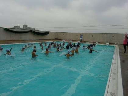 音楽にあわせて準備運動、水慣れをしました。