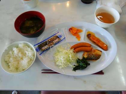 ワカメのお味噌汁とご飯がおいしくて、おかわりします。