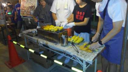 子ども達は、PTAの焼きとうもろこしとフルーツドリンクのお店を手伝いました。