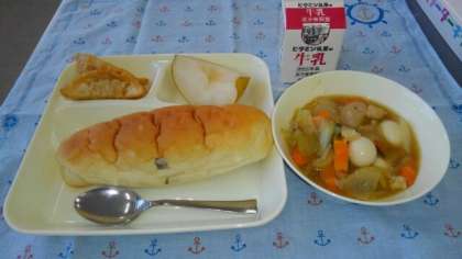 <おさつパン 牛乳 あげぎょうざ 中華煮 なし(豊水)>