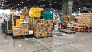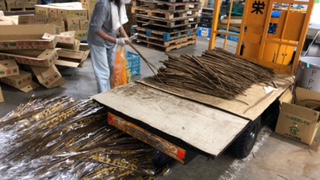 山積みの段ボールの中には、キャベツ、玉ねぎ、じゃがいもなど、今が旬の野菜がいっぱいでした。