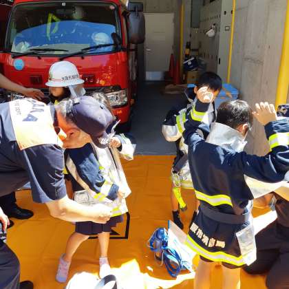 次に防火服を着る体験をしました。