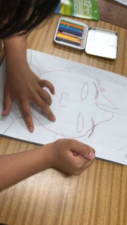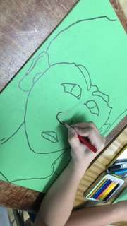 下書きした紙にトレーシングペーパーを敷いて、上から色鉛筆でなぞります。