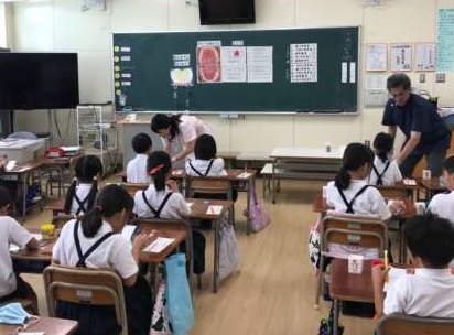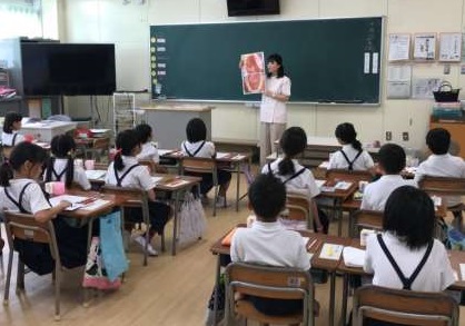 3時間目、学校歯科医の清水先生と教育委員会の歯科衛生士さんに来ていただきました。