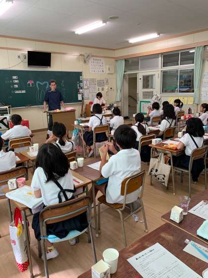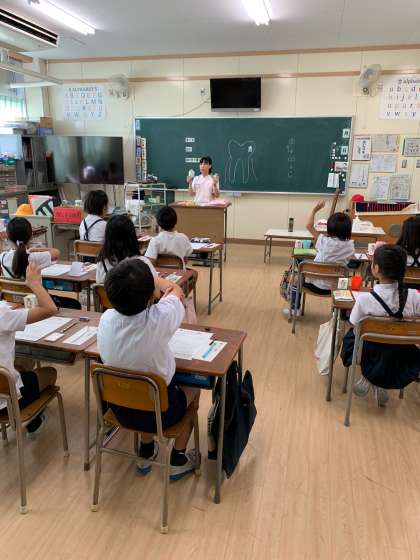 2時間目に、学校歯科医の清水先生と歯科衛生士さんに来ていただきました。