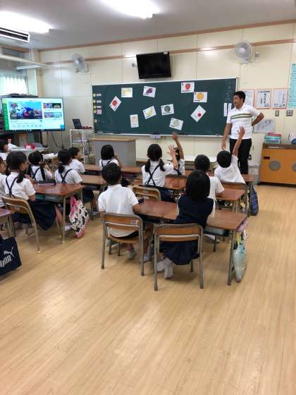 帰りの会の「今日よかったこと」の発表では「オーマ先生と英語のお勉強をして楽しかった。」や「フルーツバスケットがめっちゃ楽しかった。」等、たくさんの感想が出ていました。