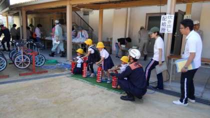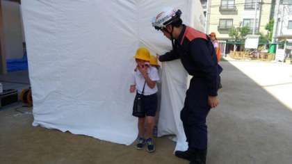 1〜4年生は、DVDでの学習と煙くぐり、消火器の体験をしました。